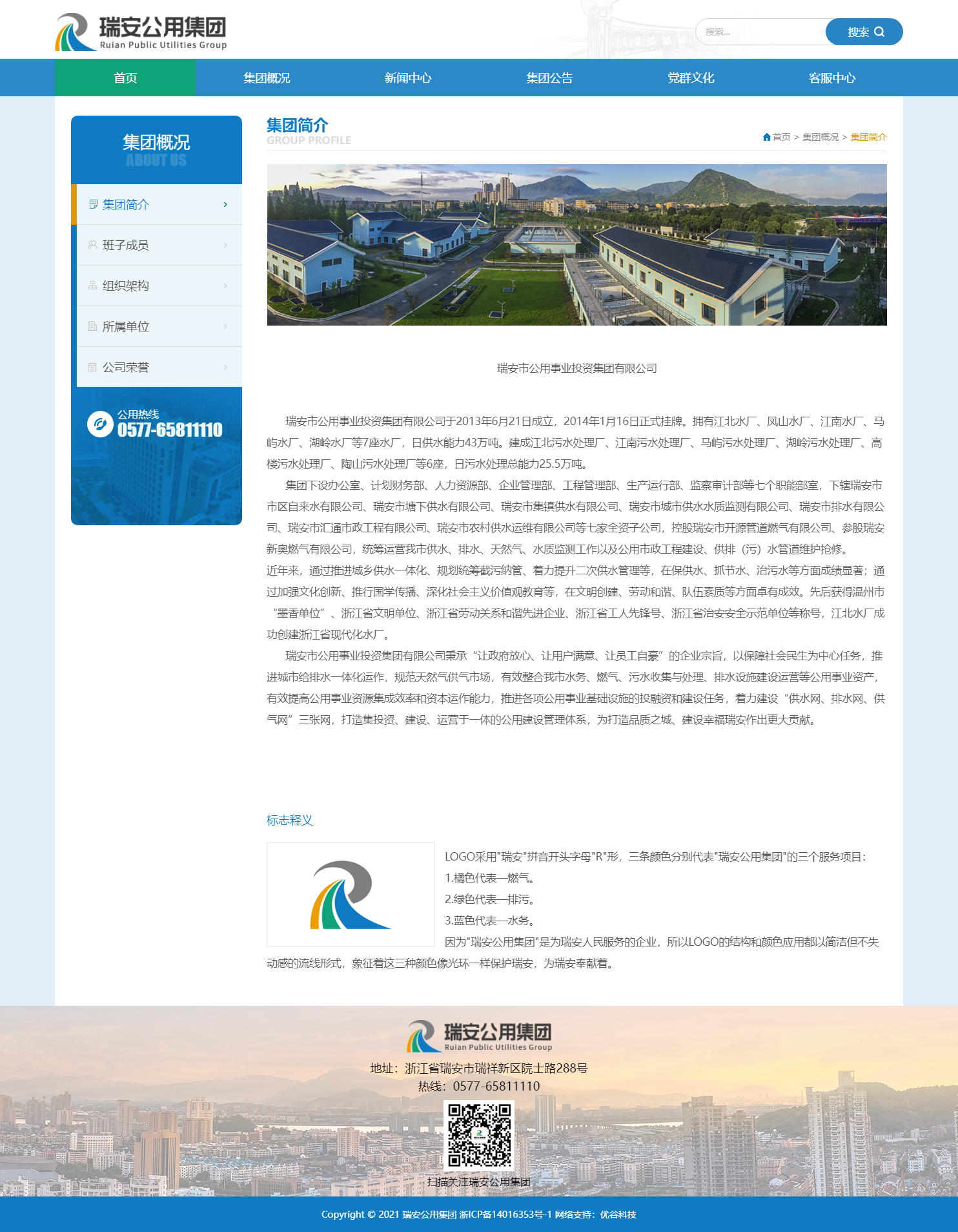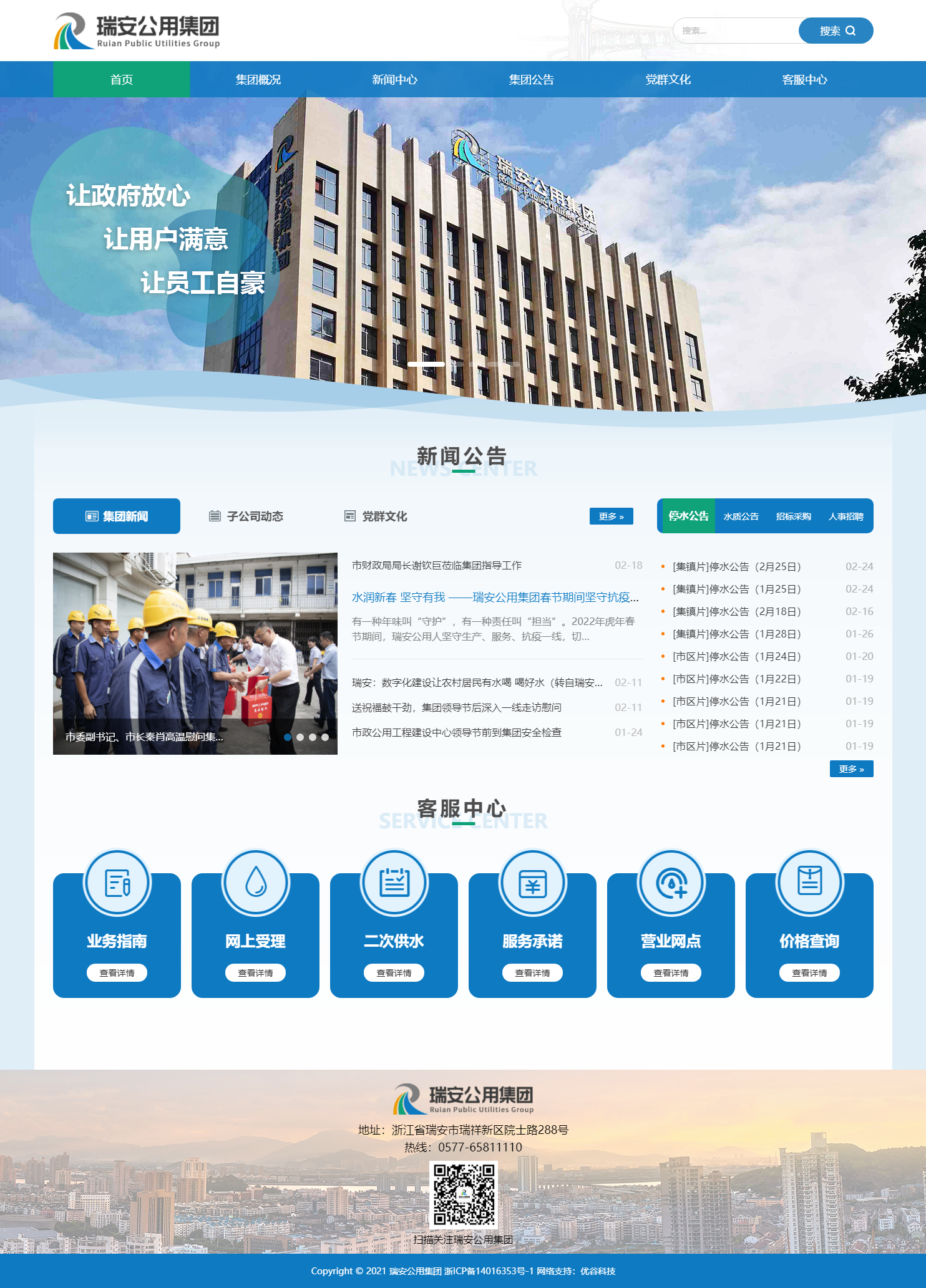瑞安市公用事業(yè)投資集團有限公司秉承“讓政府放心、讓用戶滿意、讓員工自豪”的企業(yè)宗旨,以保障社會民生為中心任務(wù),推進城市給排水一體化運作,規(guī)范天然氣供氣市場,有效整合我市水務(wù)、燃氣、污水收集與處理、排水設(shè)施建設(shè)運營等公用事業(yè)資產(chǎn),有效提高公用事業(yè)資源集成效率和資本運作能力,推進各項公用事業(yè)基礎(chǔ)設(shè)施的投融資和建設(shè)任務(wù),著力建設(shè)“供水網(wǎng)、排水網(wǎng)、供氣網(wǎng)”三張網(wǎng),打造集投資、建設(shè)、運營于一體的公用建設(shè)管理體系,為打造品質(zhì)之城、建設(shè)幸福瑞安作出更大貢獻。